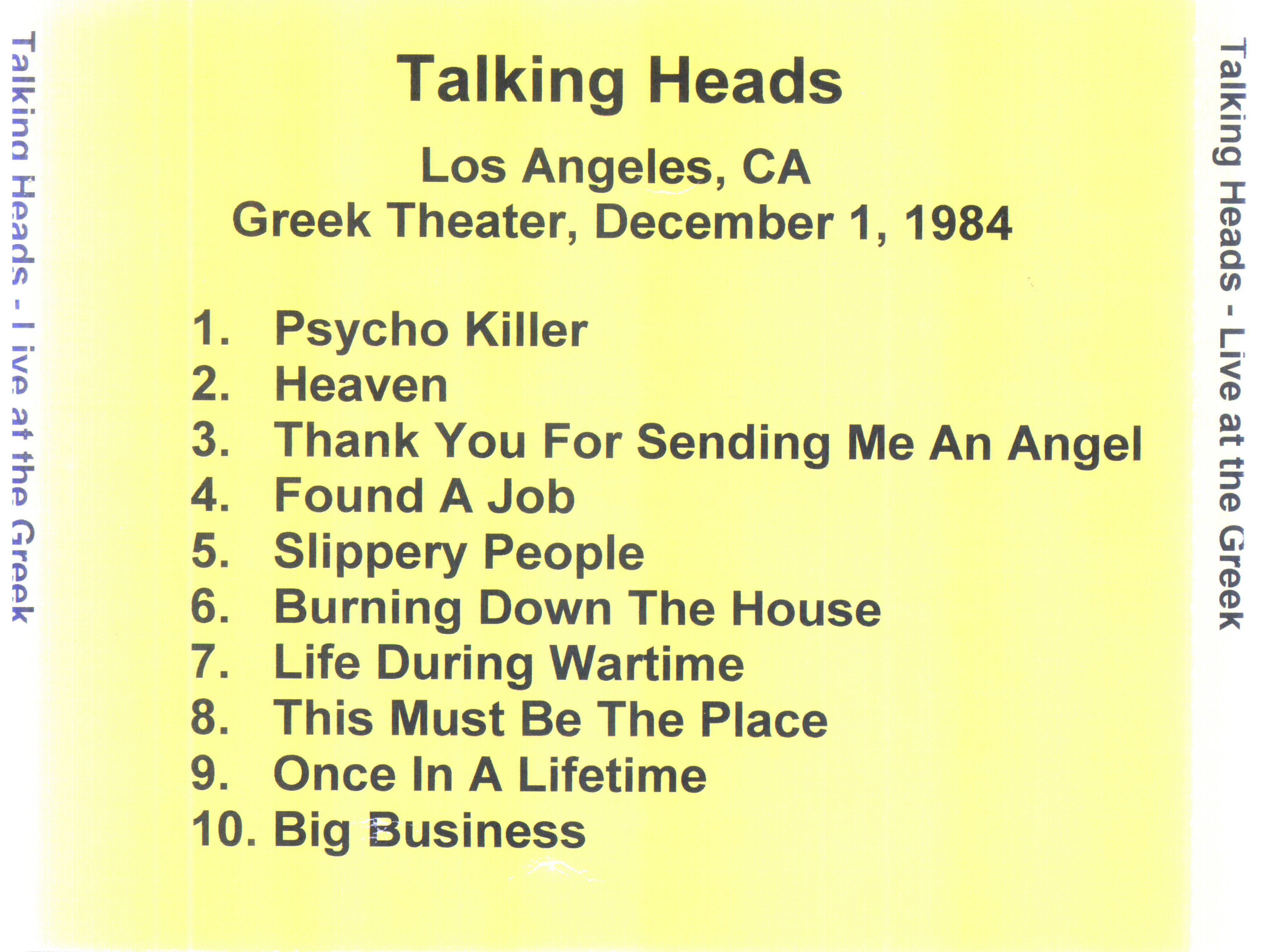 | Greek Theater | 1 Dec 1984 | 1 | Greek Theater | Berkeley | CA | USA |