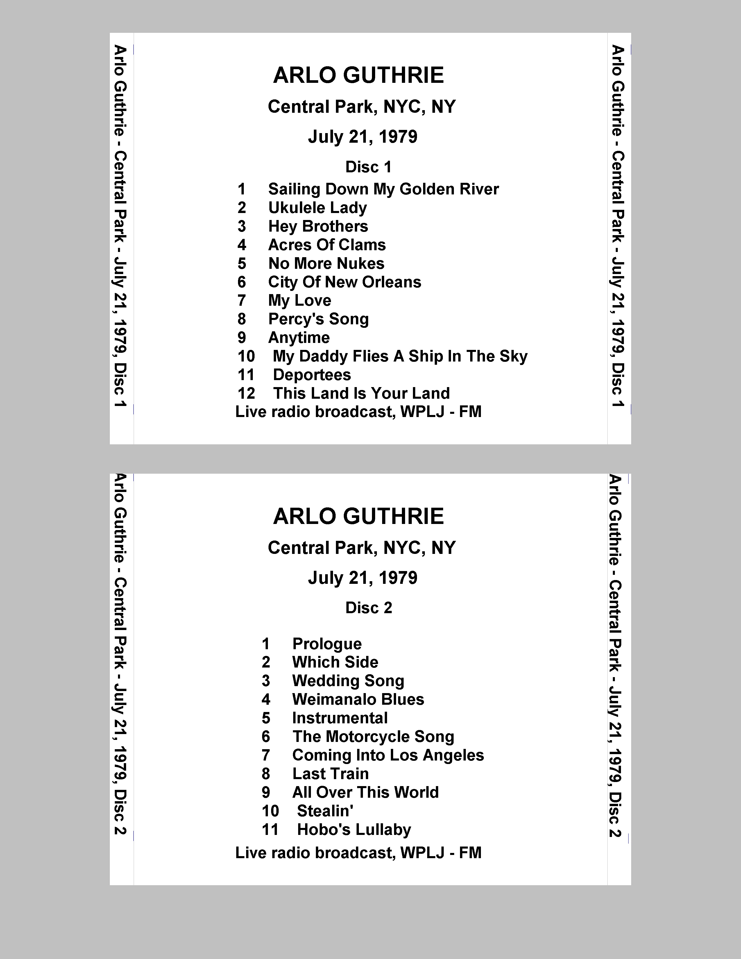 | Disc | Date | No. Discs | Venue | City | State | Country | Quality |
