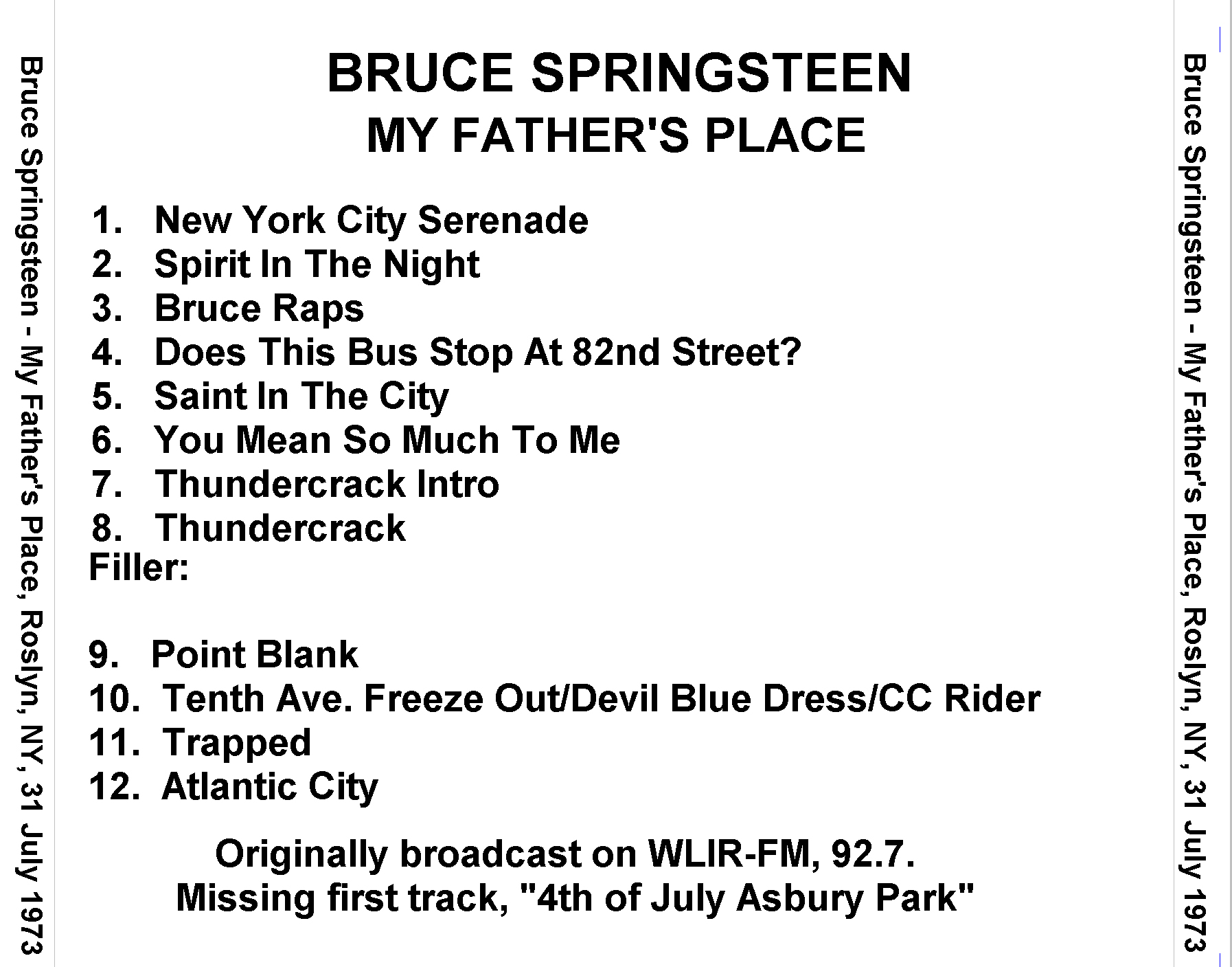 | My Father's Place | 31 July 1973 | 1 | My Father' s Place | Roslyn | NY | USA | B+ |