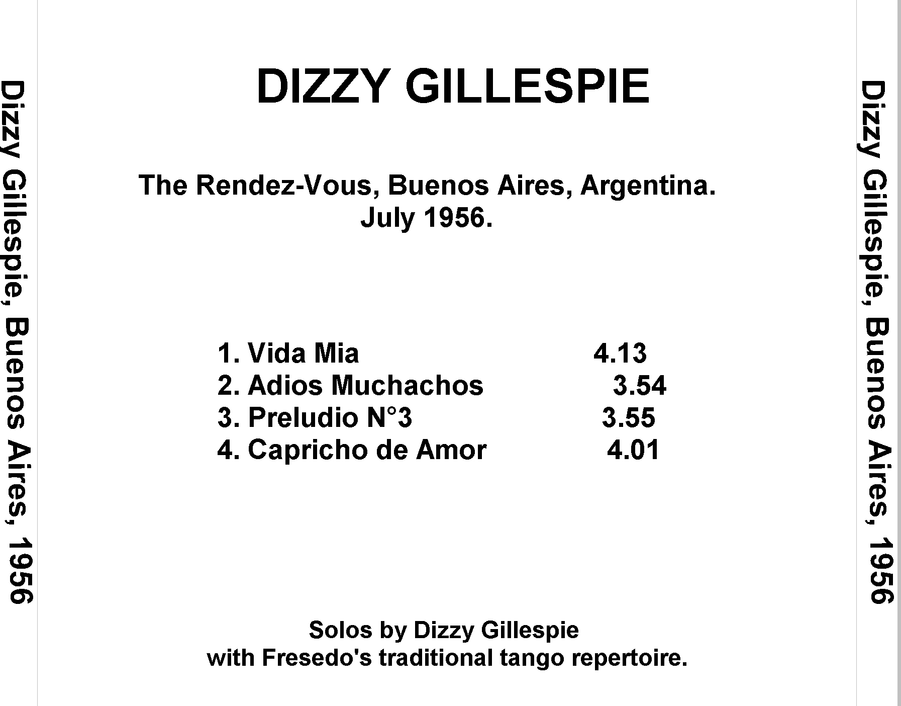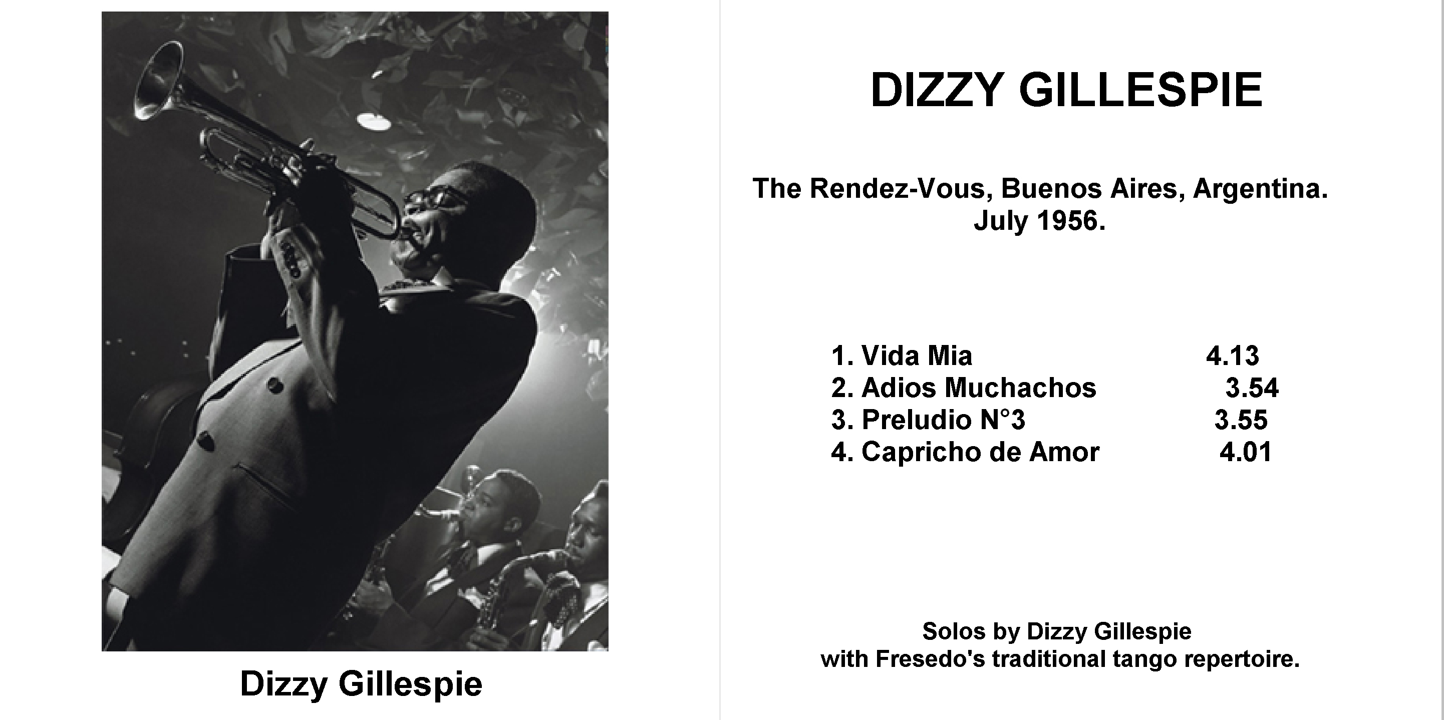 Four tracks from 1956 with solos by trumpeter Dizzy Gillespie with Fresedo's traditional tango repertoire. Note that the total running time is approximately 17 minutes.