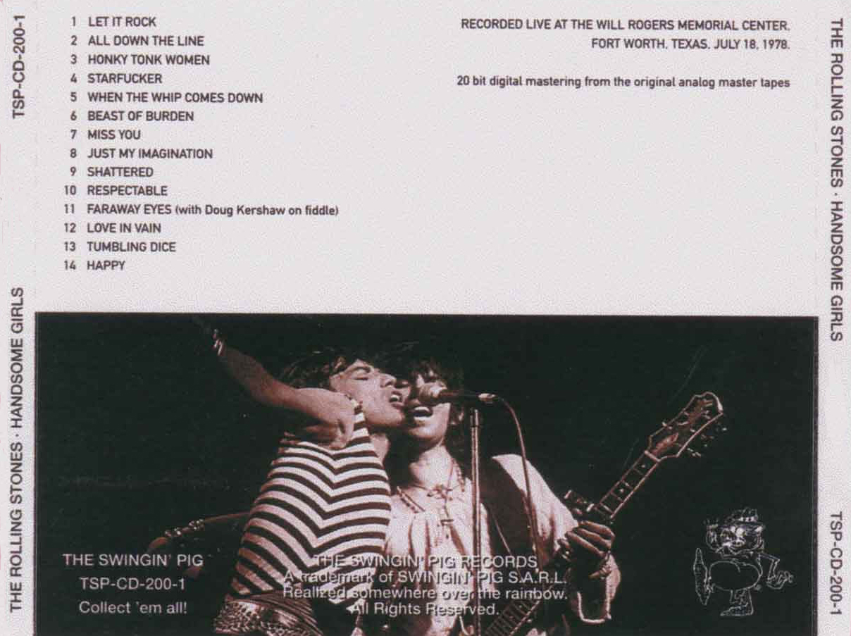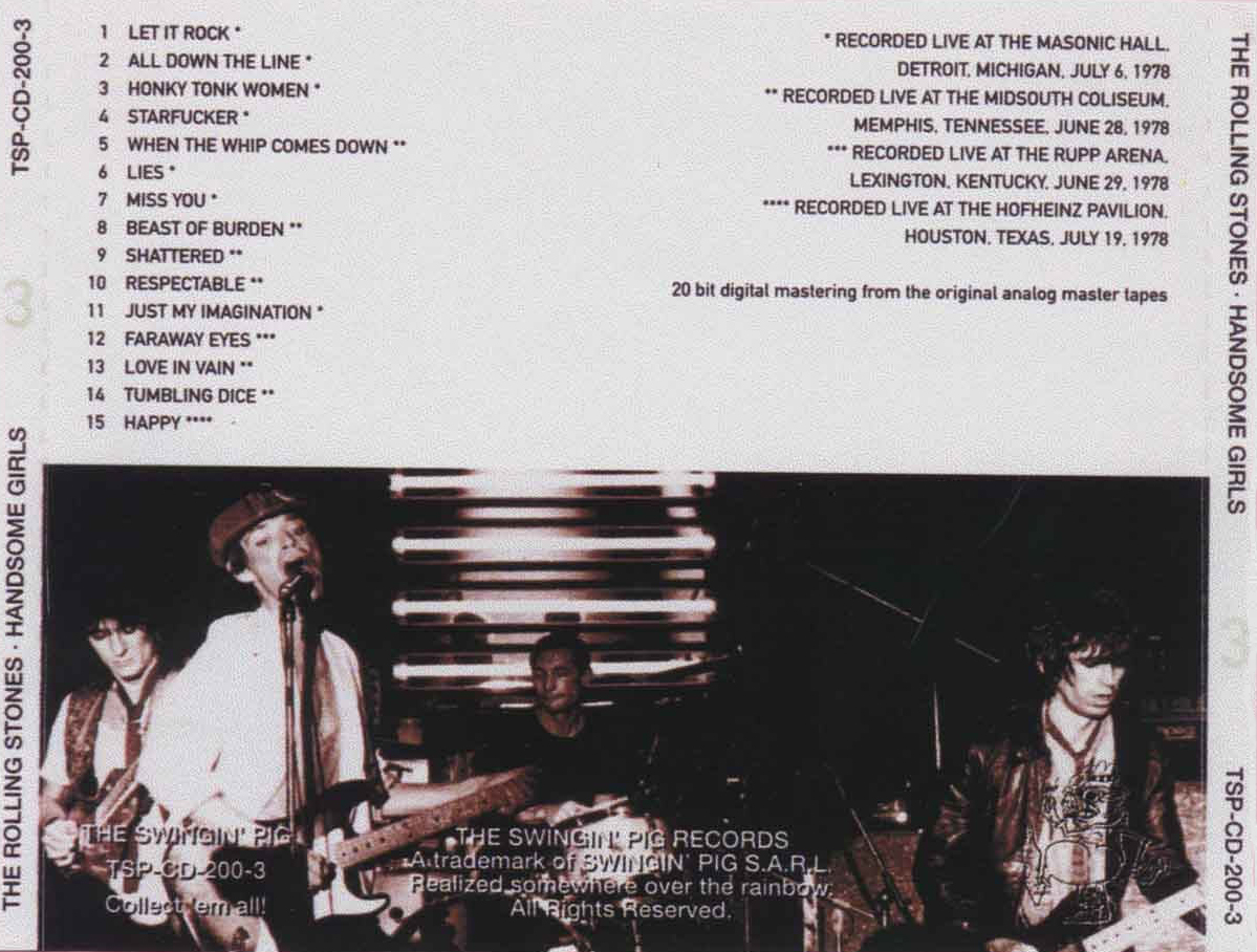 CD-R of the Swinging Pig release. Excellent. Disc 2, Tracks 4-11 are alternate mixes. Disc 3, Tracks 1-4 & 6, 7, 11: Masonic Hall, Detroit MI, 6 July 1978; tracks 5, 8, 9, 10, 13, 14: Midsouth Coliseum, Memphis TN, 28 June 1978; track 15 recorded at